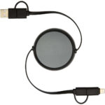 SCX.design C29 3-i-1 bambuskabel 3-i-1 bambuskabel med 1 meter lange ledninger og 3 stik (type C, mikro USB, iPhone). Kan dekoreres med et lysende logo på begge sider. Leveres i en TPU-pose med et kraftpapirkort.