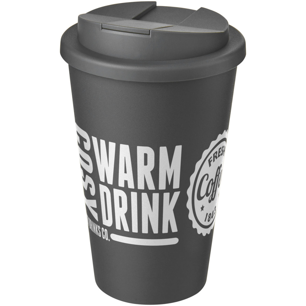 Americano® cortado 300 ml krus med grip Holdbart, enkeltvægget krus med låg som trykkes på og silikonegreb. Kruset har et glaslignende udseende med exceptionel klarhed. EN12875-1 godkendt, kan tåle at komme i opvaskemaskinen og mikrobølgeovnen. Rumindholdet er 300 ml. Mix og Matche farver for at skabe dit perfekte krus. Produceret i UK.Pakket i en genvunden PE plastik pose. BPA fri.