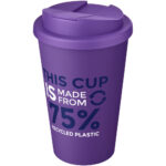 Brite-Americano® 350 ml dobbeltvægget stadion krus Dobbeltvægget isoleret krus. Det ydersiden af kruset er fremstillet af genbrugsplast. Kruset har et farvet og fuldt omsluttende design støbt til produktet, som gør det langtidsholdbart og robust. Leveres med et fleksibelt sugerør i PE. Rumindholdet er 350 ml. Produceret i UK. Pakket i en komposterbart pose. BPA-fri. Tåler opvaskemaskine.