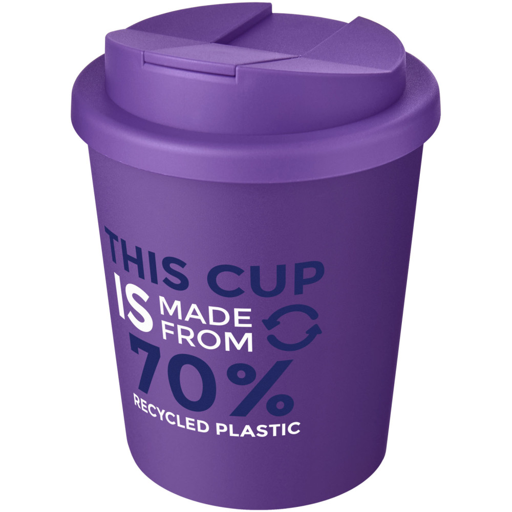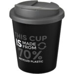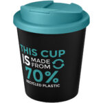 Brite-Americano® Espresso genvundet 250 ml termokop Dobbeltvægget krus med twist på-låg og fuldt farvet omsluttende design støbt til produktet. Kruset er lavet af 95 % recycled plast og har et sort inderlag. Koppen er fuldt genanvendelig og kan tåle at komme i opvaskemaskinen og i mikrobølgeovnen. Kapacitet: 250 ml. BPA-fri. Pakket i en hjemmekomposterbar pose. Fremstillet i UK.