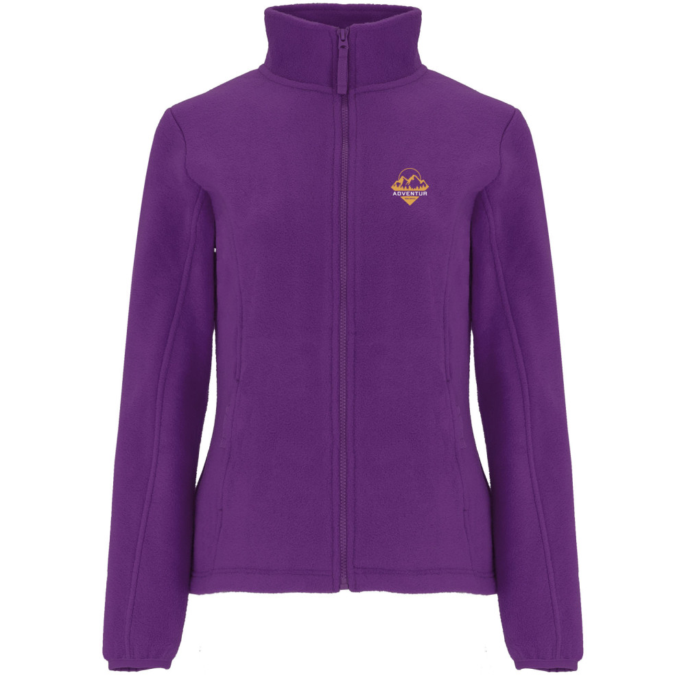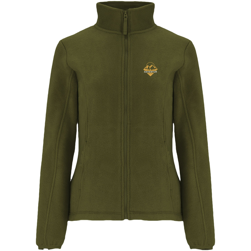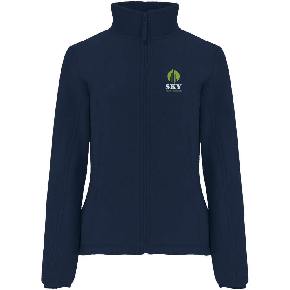 Artic fleecejakke med fuld lynlås til kvinder Kontakt os for pris Firmalogo kan tilføjes på dette produkt Fleecejakke med høj foret krave og matchende forstærkede, dækkede sømme. Indsprøjtet lynlås med matchende skyder lavet af stof. Manchetter med elastisk kant. Sidelommer. Figursyet snit. Søm med indvendige sidejusteringer. Aftagelig etiket. Modellen er 179 cm og er iført str. S. Farver Sandfarvet Marineblå Hvid Granat Ensfarvet sort Bly Lilla Rød Rosette Kongeblå Flaskegrøn Fyrregrøn Størrelser S | M | L | XL | 2XL Søger du reklameartikler og profiltøj? Kontakt vores team i dag, og lad os hjælpe dig med den rigtige løsning til din virksomhed 70 260 760 Kontakt os 70 260 760 Kontakt os