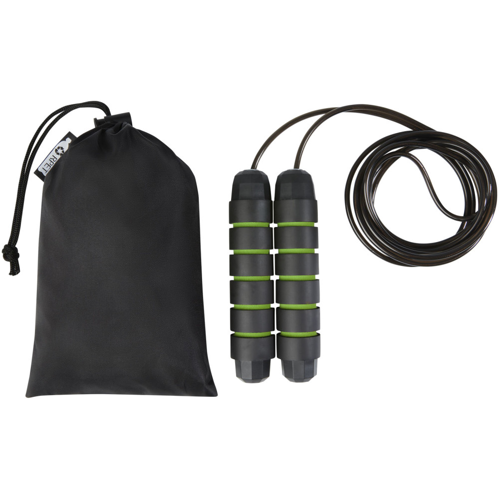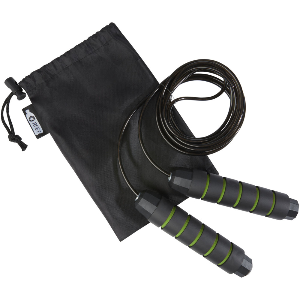 Austin blødt sjippetov i genvundet PET pose Kontakt os for pris Firmalogo kan tilføjes på dette produkt Professionelt sjippetov til voksne med ergonomisk formede håndtag i blødt skum, der giver et fast og behageligt greb under træningen. Længden af tovet er 310 cm, hvilket gør det egnet til voksne på op til 195 cm. Længden af tovet er justerbart og har et indbygget 360° drejeligt kugleleje i høj kvalitet, der sikrer jævn ubesværet rotation og undgår sammenfiltring. Leveres med en opbevaringspose (21 x 14 cm) fremstillet af genvundet PET, som giver et fantastisk område at trykke et logo på. Farver Rød Æblegrøn Søger du reklameartikler og profiltøj? Kontakt vores team i dag, og lad os hjælpe dig med den rigtige løsning til din virksomhed 70 260 760 Kontakt os 70 260 760 Kontakt os