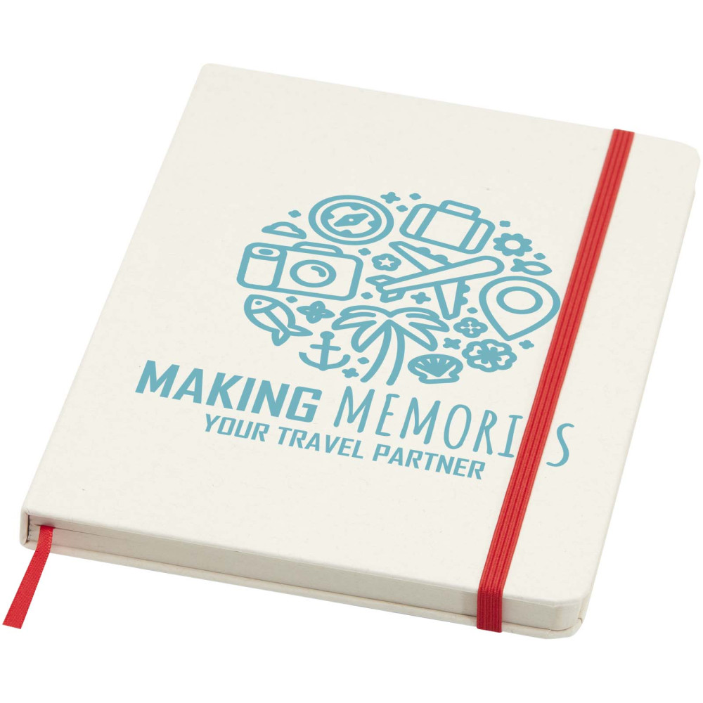 Spectrum hvid A5 notesbog med farvet elastik Hvid A5-notesbog med farvet elastiklukning og bånd. Med 80 ark linjeret papir (60 g/m²). Digitaltryk muligt på omslag.