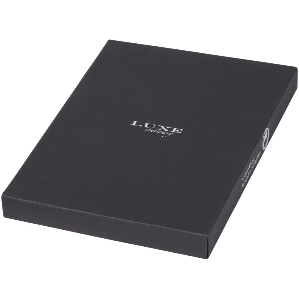 Bound A5 notesbog Kontakt os for pris Firmalogo kan tilføjes på dette produkt Notesbog i eksklusivt design (A5-format) med 80g/m2, 80 ark flødefarvet linjeret papir med indvendig baglomme og penneholder. Pakket i en ”LUXE” gaveæske. Farver Ensfarvet sort Søger du reklameartikler og profiltøj? Kontakt vores team i dag, og lad os hjælpe dig med den rigtige løsning til din virksomhed 70 260 760 Kontakt os 70 260 760 Kontakt os