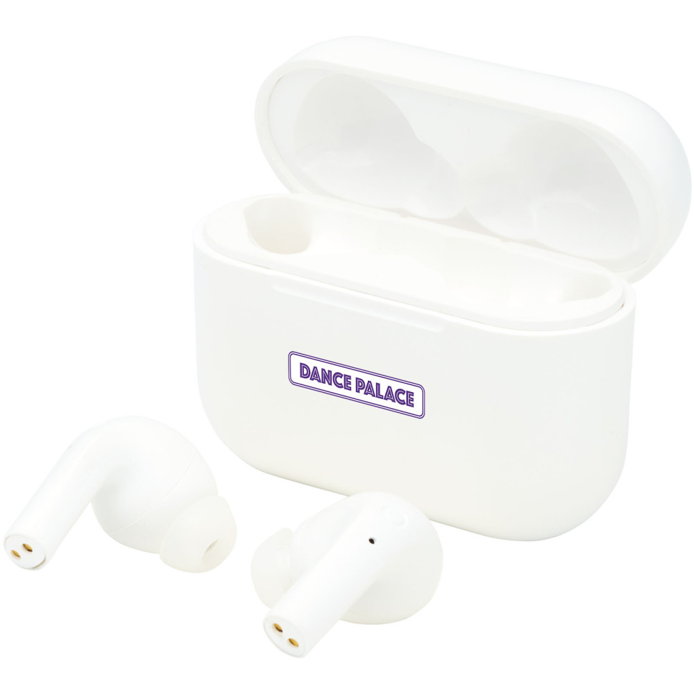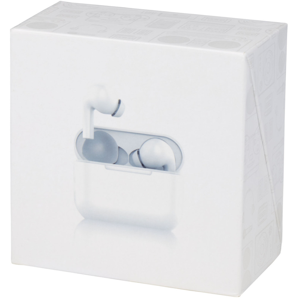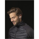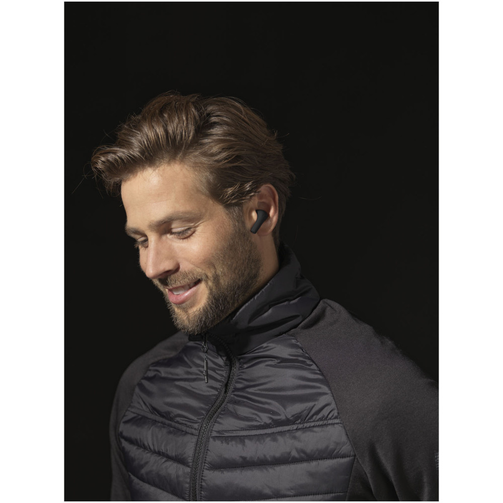 Braavos 2 True Wireless-øretelefoner med automatisk parring Kontakt os for pris Firmalogo kan tilføjes på dette produkt True Wireless-øretelefoner med automatisk parring er en opgraderet version med forbedret lydkvalitet, størrelse og trådløs opladning af batteriet. Har Bluetooth® 5.1, automatisk parring, automatisk tænding, indbygget musikkontrol og dobbelte mikrofoner til håndfri kontrol. Når øretelefonerne tages ud af etuiet, tændes de og synkroniseres automatisk med hinanden, så der ikke længere er besvær med at forsøge at få øretelefonerne synkroniseret! Etuiet bruges også som en powerbank for øretelefonerne og kan oplades med det medfølgende Type-C-kabel. Batteriet på 400 mAh i etuiet er opladet, kan det oplade øretelefonerne 3 gange fra 0-100 %. Med over 6 timers afspilningstid ved max volumen på en enkelt opladning. Disse øretelefoner et must for enhver rejsende. Øretelefonernes ergonomiske design holder dem på plads på farten. Det tager 1,5 timer at oplade øretelefonerne fra 0-100 %. Etuiet kan blive opladet på under 1,5 timer. Understøtter Siri og Google Assistent. Bluetooth®-funktionsområdet er 10 meter. Pakket i en gaveæske. Farver Hvid Ensfarvet sort Søger du reklameartikler og profiltøj? Kontakt vores team i dag, og lad os hjælpe dig med den rigtige løsning til din virksomhed 70 260 760 Kontakt os 70 260 760 Kontakt os