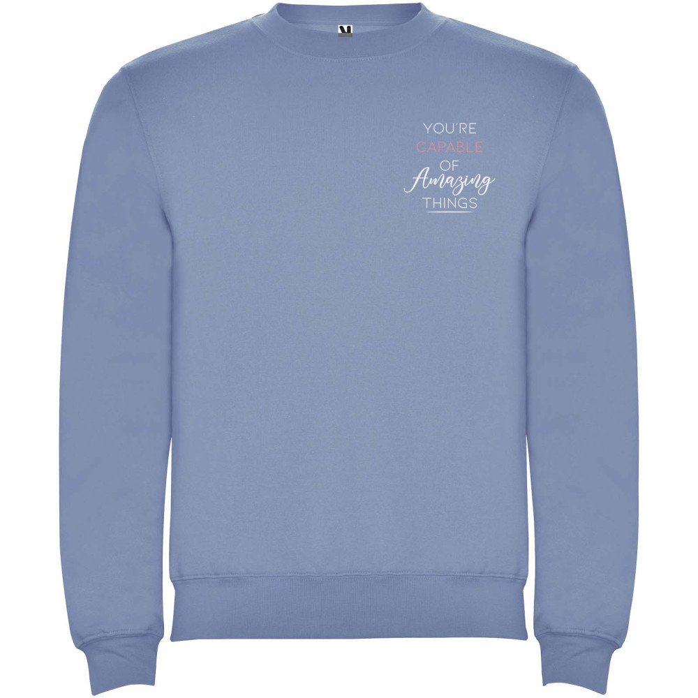 Clasica unisex sweater med rund hals Kontakt os for pris Firmalogo kan tilføjes på dette produkt Klassisk sweatshirt med 1×1 elastan rib i krave, manchetter og linning. Forstærkede, dækkede sømme i kraven. Aftagelig etiket. Modellen er 185 cm og er iført str. L. Farver Gul Sandfarvet Marineblå Havblå Zen blå Hvid Vintage hvid Himmelblå Granat Perlegrå Marlgrå Syrenfarvet Orange Ensfarvet sort Mørk bly Lilla Rød Lyserød Rosette Kongeblå Turkis Venture grøn Flaskegrøn Kelly grøn Tågegrøn Oasegrøn Bærrød Stormblå Bleg rød Ask hvid mélange Karri gul Størrelser XS | S | M | L | XL | 2XL | 3XL Søger du reklameartikler og profiltøj? Kontakt vores team i dag, og lad os hjælpe dig med den rigtige løsning til din virksomhed 70 260 760 Kontakt os 70 260 760 Kontakt os