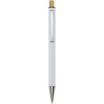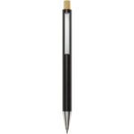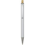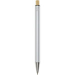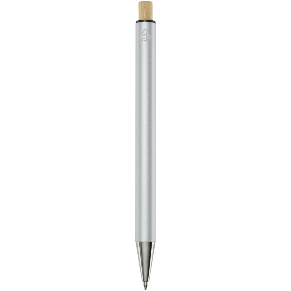 Nooshin kuglepen af genvundet aluminium (blå refill) Nooshin kuglepennen er lavet af genvundet aluminium, som kræver mindre energi end at producere aluminium fra råmaterialer. Det reducerer også mængden af affald på lossepladserne og bidrager til at bevare naturressourcerne med henblik på at reducere drivhusgasemissionerne. Trykknappen er fremstillet af bambus. Blækfarve: Blå. Skrivelængde: 800 meter. Spidsstørrelse: 1,00 mm.