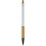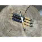 Nash kuglepen i bambus (blå refill) Kuglepen med klikmekanisme, med en cylinder lavet af bambus, fremhævet med en kromklips og pynt af ABSplastik. Farven på bambusmateriale kan variere.