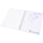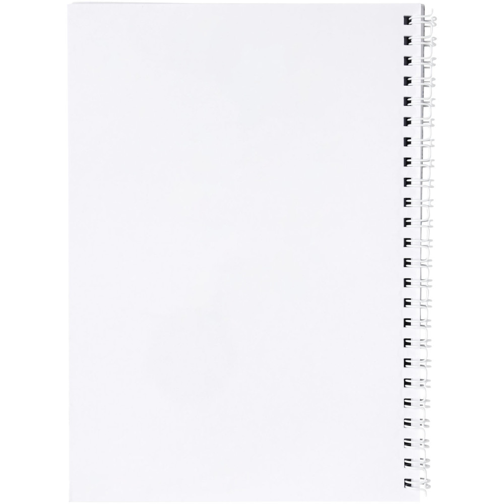 Desk-Mate® spiral A5 notesbog Denne model findes med hvid eller sort spiral, et blank front omslag (250 g/m2). Standard modellen er med 50 sider. Findes også med 80 sider. Kan tilpasse i eget design, uanset om du ønsker linjeret, ternet eller prikke papir. Alt er muligt!