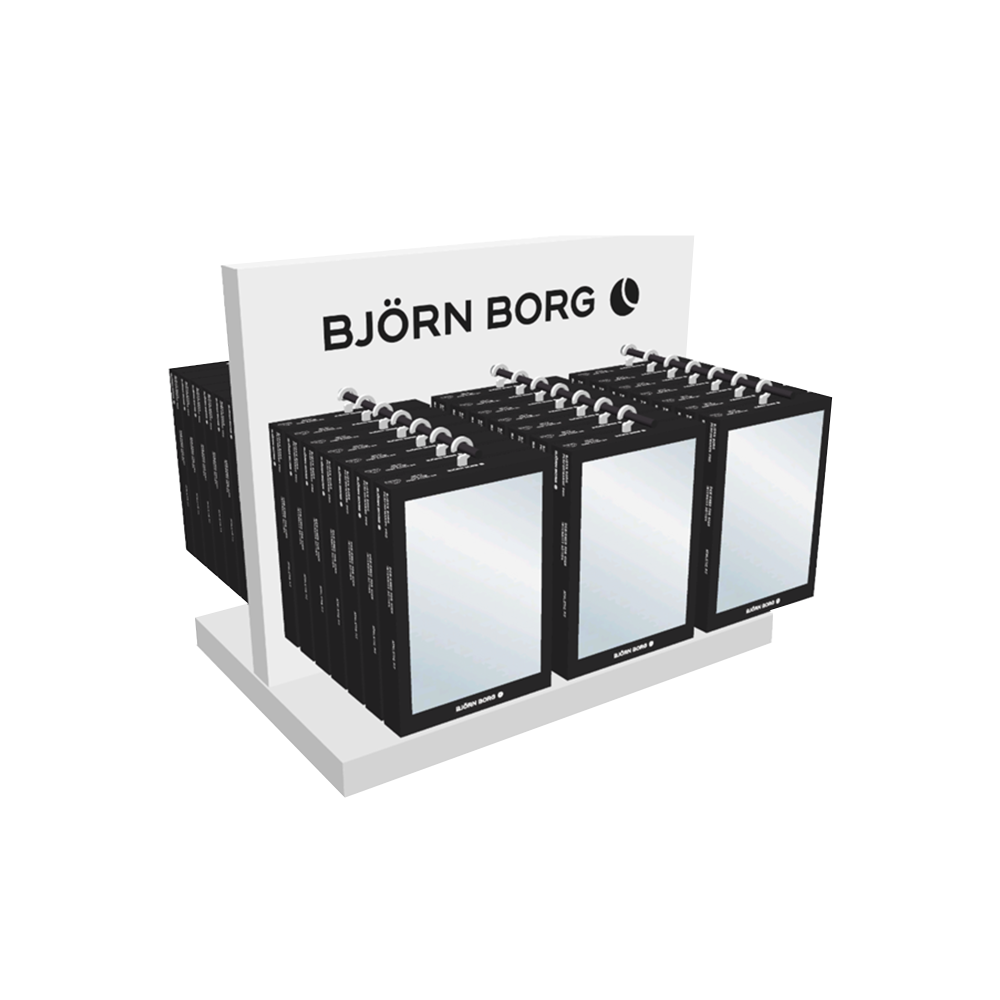 Display Table Stand Point-of-sales Model: 1000579001001 kr. 552,00 Ex. moms Firmalogo kan tilføjes på dette produkt Point of sales material for Björn Borg underwear. A good way of presenting new styles in store.The s tand can hold 42 pcs of 1-pack. D 45 cm x W 60 cm x H 37 cmFor free with a purchase of 50 pcs, conta ct your salesperson for more information. Farver Black Størrelser ONE SIZE Brand: Båstadgruppen Søger du reklameartikler og profiltøj? Kontakt vores team i dag, og lad os hjælpe dig med den rigtige løsning til din virksomhed 70 260 760 Kontakt os 70 260 760 Kontakt os