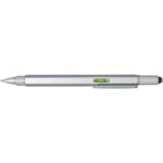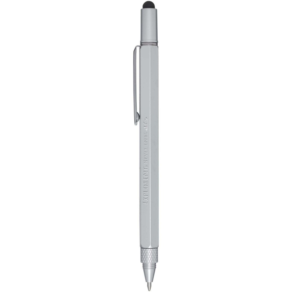 Dora multifunktionskuglepen i genvundet aluminium (sort refill) Kontakt os for pris Firmalogo kan tilføjes på dette produkt Denne Dora multifunktionskuglepen i aluminium er delvist fremstillet af genbrugsmaterialer og har en dobbeltsidet lineal, håndtag, skruetrækker, vaterpas og en sort stylus pen lavet af gummi. Hylsterets nederste del er lavet af genvundet aluminium med spraybelægning i sølv. Clipsen er lavet af jern. Skruetrækkeren er lavet af jern. Toppen og spidsen er lavet af RABS. Blækfarve: Sort Skrivelængde: 400 meter. Spidsstørrelse: 1,0 mm. Farver Sølv Søger du reklameartikler og profiltøj? Kontakt vores team i dag, og lad os hjælpe dig med den rigtige løsning til din virksomhed 70 260 760 Kontakt os 70 260 760 Kontakt os