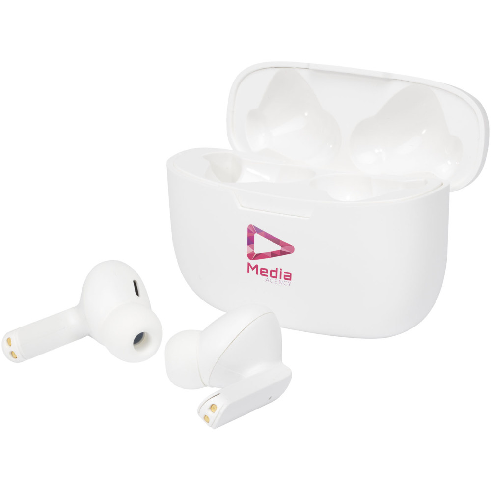 Essos 2.0 True Wireless øretelefoner med automatisk parring og etui Kontakt os for pris Firmalogo kan tilføjes på dette produkt De berømte Essos øretelefoner har fået en opdatering med denne nye 2.0 version! Et helt nyt design med det samme kvalitetsfokus for øje. Øretelefonerne har Bluetooth® 5.3, automatisk parring og tænder automatisk. Integreret med gennemsigtighedsfunktion, som vil forbedre lyden omkring dig udefra ved hjælp af indbygget programmering, så du kan være opmærksom på dine omgivelser, når du bruger øretelefonerne. Det er endda muligt at kommunikere med folk uden at fjerne øretelefonerne. Når 300 mAh batteriet i etuiet er opladet, kan det oplade øretelefonerne 3 gange fra 0-100 %. Med over 3 timers afspilningstid ved max volumen på en enkelt opladning, er disse øretelefoner et must for enhver rejsende. Øretelefonerne understøtter hurtig opladning. Kun 10 minutters opladning giver over 60 minutters afspilningstid ved maks. lydstyrke! Øretelefonernes ergonomiske design holder dem på plads, når du er i bevægelse. Indbygget styring af musikken og mikrofon til håndfri betjening. Etuiet kan blive opladet på under 1,5 timer. Understøtter Siri og Google Assistent. Bluetooth® funktionsområdet er op til 10 meter. Leveres i en premium æske fremstillet af bæredygtigt materiale. Farver Hvid Ensfarvet sort Søger du reklameartikler og profiltøj? Kontakt vores team i dag, og lad os hjælpe dig med den rigtige løsning til din virksomhed 70 260 760 Kontakt os 70 260 760 Kontakt os