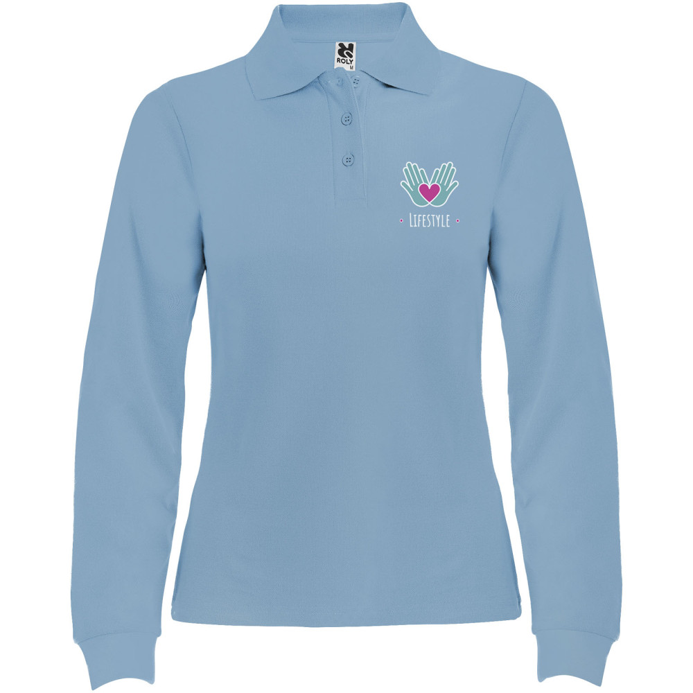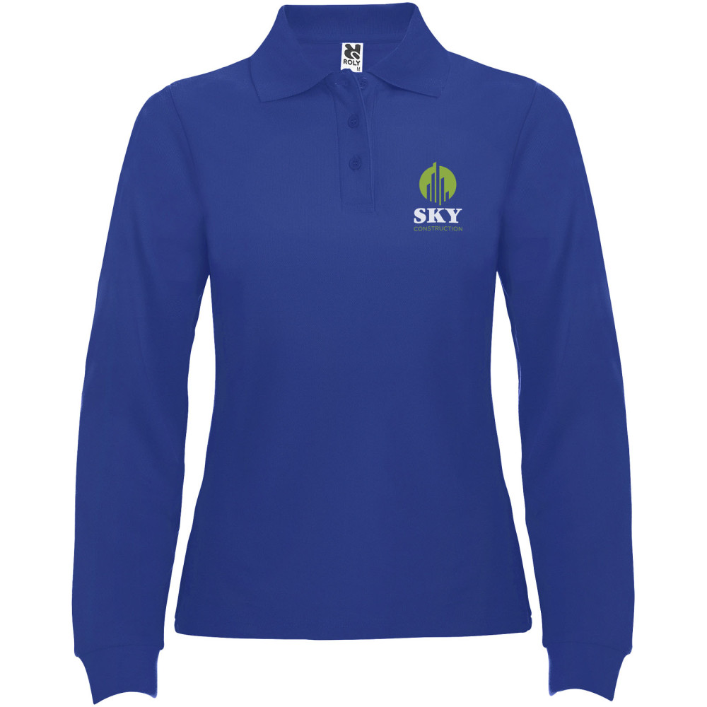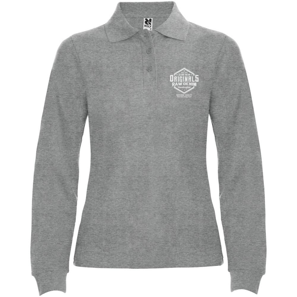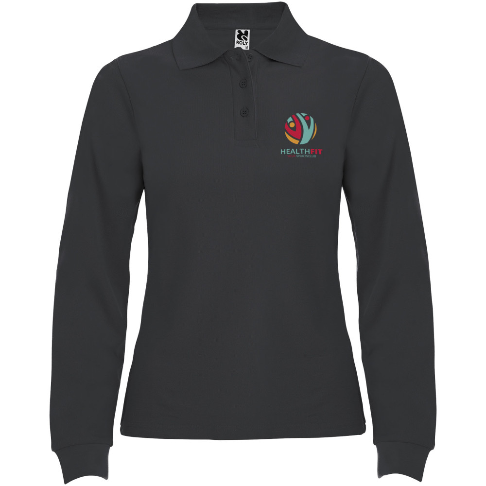 Estrella langærmet polo til kvinder Kontakt os for pris Firmalogo kan tilføjes på dette produkt Langærmet polotrøje med ribstrikket krave og manchetter, 3 knapstolpe og 1×1 ribstrikkede elastanmanchetter. Forstærkede, dækkede sømme i kraven. Slim-fit. Aftagelig etiket. Modellen er 168 cm og er iført str. S. Farver Marineblå Hvid Himmelblå Granat Marlgrå Ensfarvet sort Mørk bly Rød Kongeblå Turkis Græsgrøn Størrelser S | M | L | XL | 2XL | 3XL Søger du reklameartikler og profiltøj? Kontakt vores team i dag, og lad os hjælpe dig med den rigtige løsning til din virksomhed 70 260 760 Kontakt os 70 260 760 Kontakt os