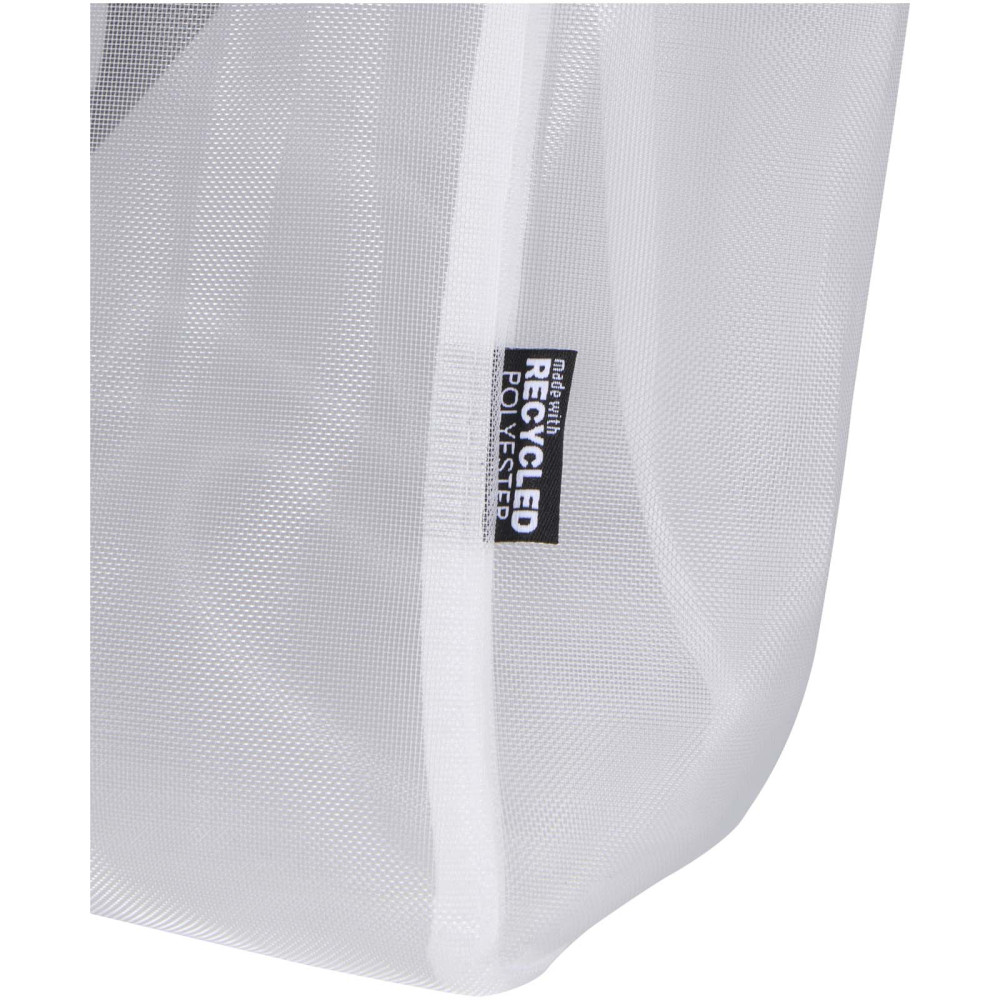 Genvundet GRS mulepose i mesh, 23 l Kontakt os for pris Firmalogo kan tilføjes på dette produkt Rummelige 23 liters mulepose er fremstillet af genvundet mesh i polyester og tilbyder et mere ansvarligt valg uden at gå på kompromis med det praktiske. Den har et sikkert lynlåsrum, en forlomme og to sidelommer til at holde orden i de vigtigste ejendele, mens de bløde bærehåndtag (30 cm i frihøjde) sikrer komfortabel brug. Den gennemsigtige konstruktion i mesh giver et rent, moderne look og gør det nemt at se indholdet – ideel til arbejde, rejser, fitnesssessioner eller begivenheder med en politik om gennemsigtige tasker. Kan bære op til 15 kg. Farver Hvid Kongeblå Ensfarvet sort Søger du reklameartikler og profiltøj? Kontakt vores team i dag, og lad os hjælpe dig med den rigtige løsning til din virksomhed 70 260 760 Kontakt os 70 260 760 Kontakt os