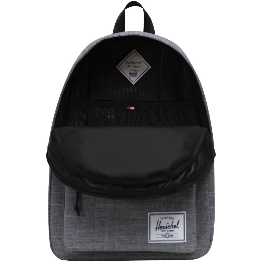 Herschel Classic™ recycled laptop rygsæk 26 l Kontakt os for pris Firmalogo kan tilføjes på dette produkt Gør dig klar til dit næste eventyr med Herschel Classic™ recycled rygsækken, der giver rigelig plads til alle dine nødvendigheder. Rygsækken er udformet med 100 % ansvarlig EcoSystem™ materialer, så du kan tage på eventyr med god samvittighed. 600D stoffet er mesterligt fremstillet af 100 % genbrugte vandflasker, hvilket giver enestående holdbarhed. Inde i rygsækken finder du et polstret sleeve, der giver en sikker pasform til din 15″/16″ bærbare computer. De justerbare og polstrede skulderremme sikrer komfort under lange rejser. Rygsækken er designet med en separat lomme til vandflasker og en forlomme, så du nemt kan opbevare mindre genstande. Med en volumen på 26 liter er Herschel Classic™ rygsækken den perfekte ledsager til ethvert eventyr. Farver Rose guld Marineblå Meleret grå Ensfarvet sort Søger du reklameartikler og profiltøj? Kontakt vores team i dag, og lad os hjælpe dig med den rigtige løsning til din virksomhed 70 260 760 Kontakt os 70 260 760 Kontakt os