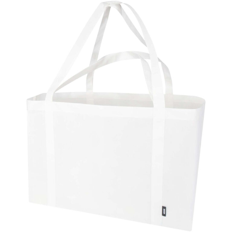 Zeus GRS genvunden non woven konventionel mulepose 65 l Jumbo GRS certificerede og genvundet mulepose er fremstillet af slidstærkt og rivefast non woven RPET og byder på en ekstra stor kapacitet på op til 65 liter til forskellige aktiviteter som f.eks. store dagligvareindkøb eller en dag på stranden eller i parken. Har forstærkede korte håndtag (24 cm) og lange håndtag (37 cm), der giver […]
