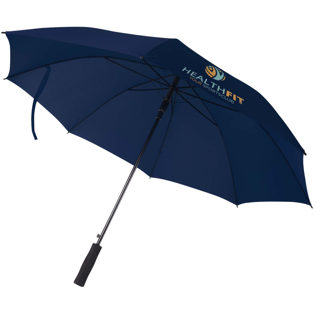 Bella 58 cm vindfast paraply med automatisk åbning Paraply med automatisk åbning med en polyesterskærm. Den har et robust metalskaft, en patenteret fuld glasfiberramme i høj kvalitet, der giver maksimal fleksibilitet under blæsende forhold. Lige plastikhåndtag, spidser og top. Fås i en bred vifte af moderne farver og har et stort dekorationsområde.