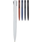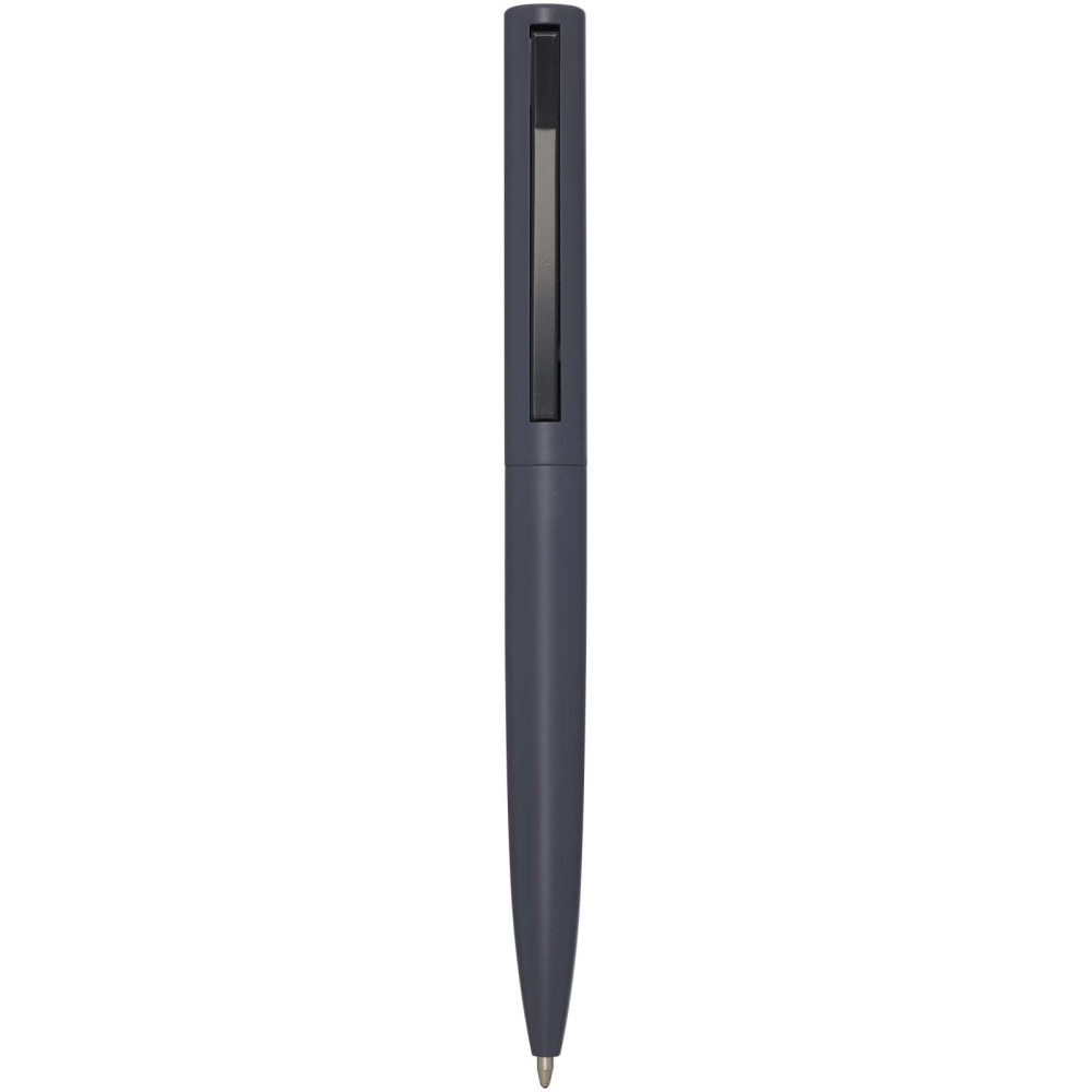 Alessio genvundet PET-kuglepen (blå refill) Klikkuglepen lavet af genvundet PET, der kommer fra genbrugs plastflasker (undtagen refill og fjederen). Der bruges én flaske på 500 ml til at fremstille en kuglepen. Inkluderer en europæisk X20-refill med dokumentblæk og en skrivelængde på ca. 2000 meter. Fås også med sort refill (107722). Lavet i Italien.