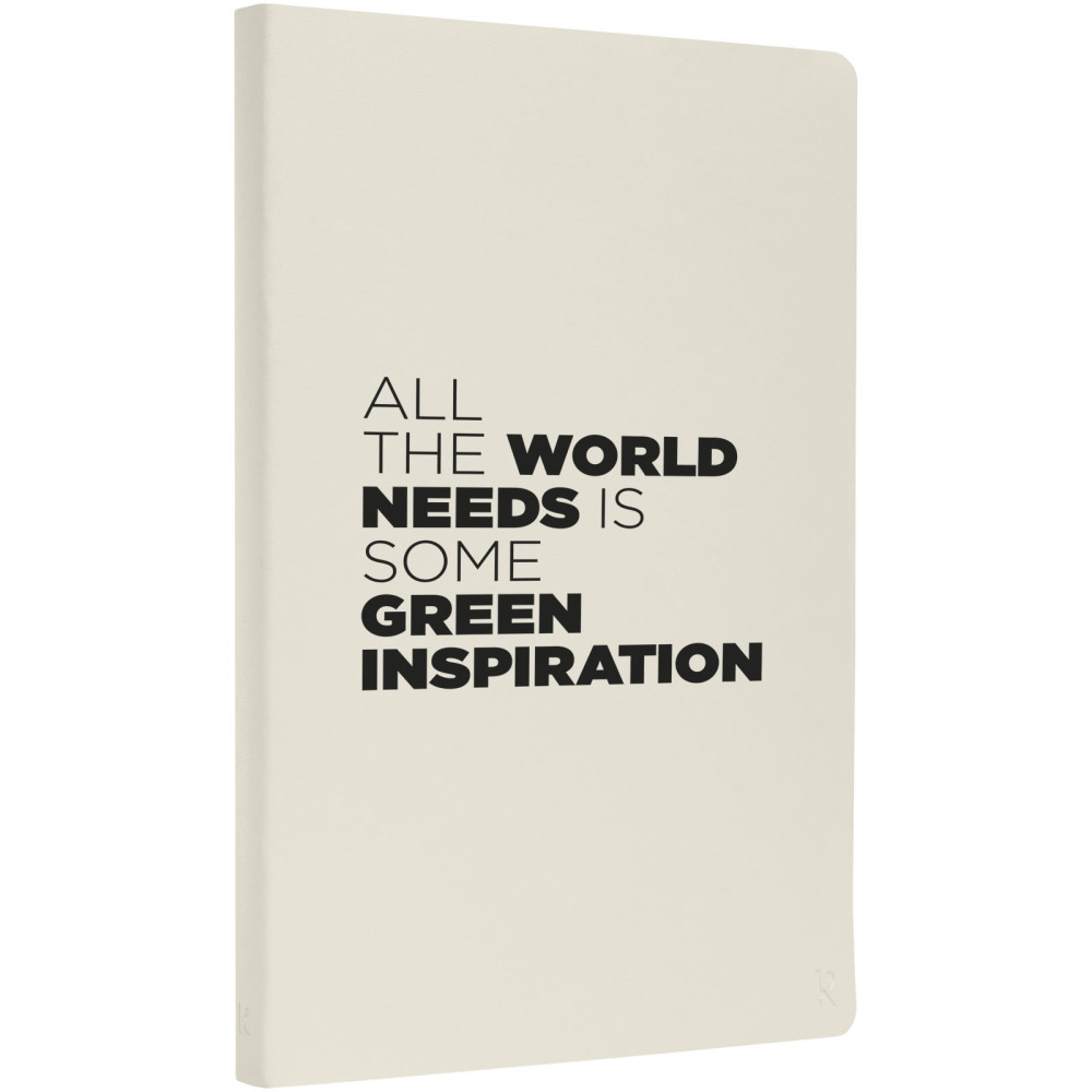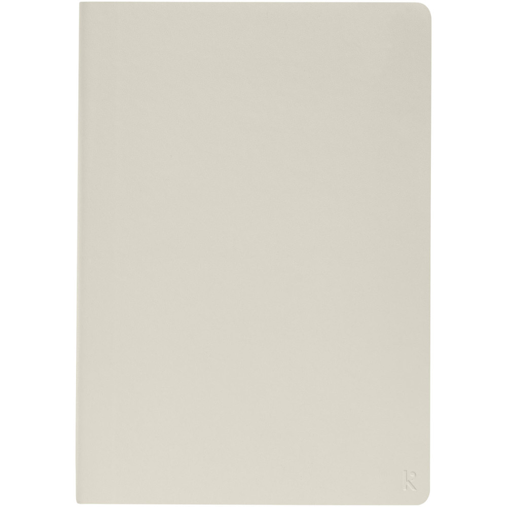 Nova indbundet A5 notesblok Notesblok i Imiteret læder A5 (14,2 cm x 21,4 cm) (kunstlæder) med elastik, bogmærkebånd, penneholder og harmonikabaglomme. Indeholder 96 ark linjeret, flødefarvet papir i 80 g/m2 og fås i et hvidt Journalbook-omslag.