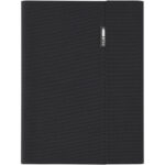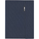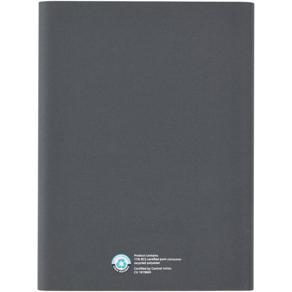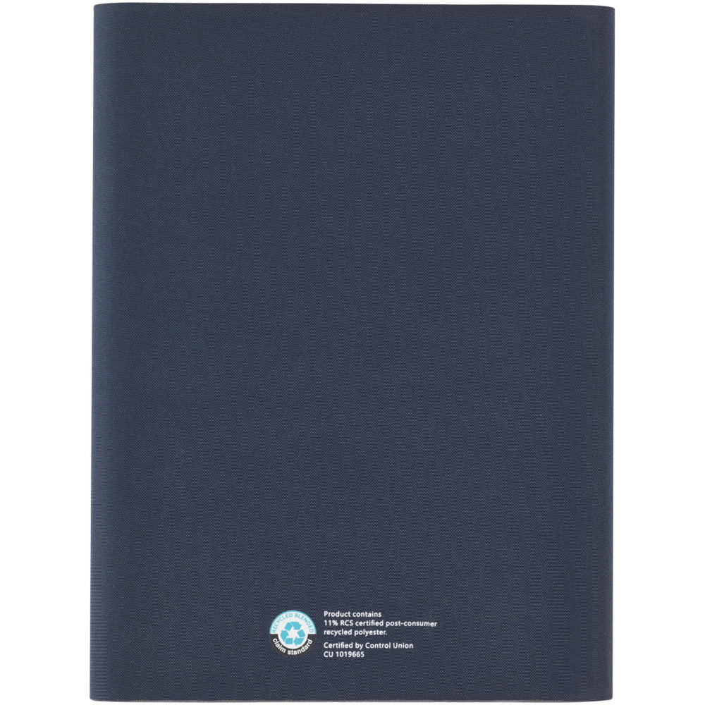 Thalaasa hardcover notesbog i ocean bound plast Thalaasa notesbogen har et polyester cover som er fremstillet af ocean bound plast, der er indsamlet fra kystområder. Dette gør denne notebook til et mere bæredygtigt valg, da den hjælper med at reducere plastaffald. Med 80 forede ark med 80 g/m2 genbrugspapir, penneloop, elastiklukning, båndmarkør og harmonika lomme.