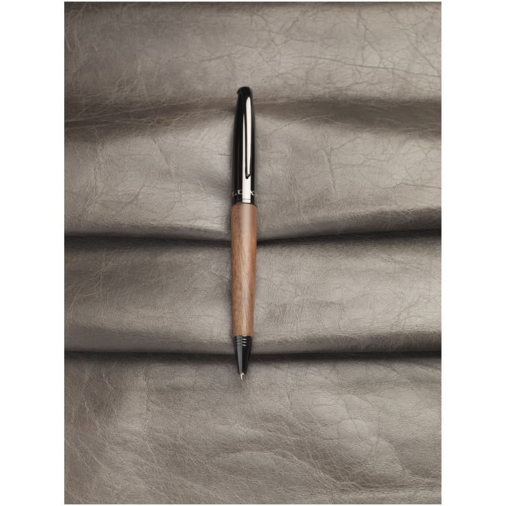 Loure kuglepen med træcylinder (sort refill) Kontakt os for pris Firmalogo kan tilføjes på dette produkt Dreje-kuglepen med cylinder i træ-udseende, lavet af messing med krombelægning, leveret i en -luksus-gaveæske. Kuglepensstørrelse: 14,1 cm, 1,2 cm, vægt: 26 gr, skrivelængde: 1500 m. Farver Ensfarvet sort / mørkebrun Søger du reklameartikler og profiltøj? Kontakt vores team i dag, og lad os hjælpe dig med den rigtige løsning til din virksomhed 70 260 760 Kontakt os 70 260 760 Kontakt os