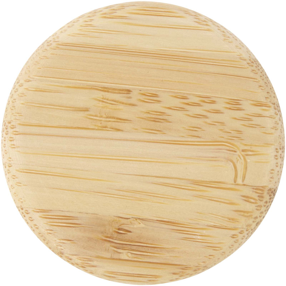 Mirage 650 ml enkeltvægget flaske af borosilikatglas med låg af bambus Flaske af borosilikatglas med bambuslåg. Flasken har et unikt ribbet design på indersiden og en glat yderside, der er perfekt til påtrykning af et logo. Den anvendte bambus er bæredygtigt tilvejebragt med respekt for miljøet og socialt ansvarligt. Leveres i en æske af genbrugspap. Kapacitet: 650 ml.