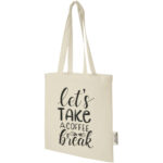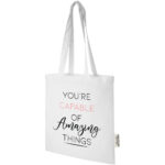 Florida 270 g/m² GRS recycled mulepose med bund 14L Fremstillet af 100 % GRS certificeret genvundet bomuld på 270 g/m² garanterer Florida muleposen et mere ansvarligt og holdbart valg for dine daglige behov. Med en kapacitet på hele 14 liters og 30 cm lange håndtag er den perfekt til at transportere dagligvarer, bøger eller hverdagsting uden problemer.