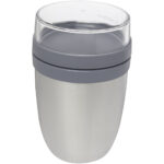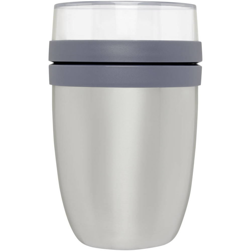 Mepal Ellipse 500+200 ml isoleret madkasse Kontakt os for pris Firmalogo kan tilføjes på dette produkt Isoleret madkasse med to forskellige rum til at holde de forskellige ingredienser adskilt. Begge beholdere har et separat låg, så ingredienserne ikke blandes. Holder mad varm i 10 timer eller kold i 16 timer. For at sikre, at maden forbliver varm eller kold så længe som muligt, anbefales det at skylle madkassen med varmt eller iskoldt vand inden påfyldning. Indholdet af den øverste gennemsigtige beholder er 200 ml, hvilket betyder, at den kan rumme omkring 75 gram fast føde. Den nederste beholders kapacitet er 500 ml. Lavet af slidstærkt materiale, og ydersiden af kassen forbliver kølig og tør. Det anbefales at vaske den i hånden. Dækslets plastikdele kan sættes i opvaskemaskinen. Lækagesikker. BPA-fri. 2 års Mepal garanti. Farver Sølv Titaniumfarvet Søger du reklameartikler og profiltøj? Kontakt vores team i dag, og lad os hjælpe dig med den rigtige løsning til din virksomhed 70 260 760 Kontakt os 70 260 760 Kontakt os