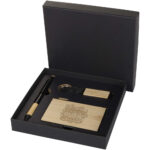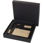Minka sæt med kuglepen, nøglering og RFID kortholder af RCS genvundet aluminium Kontakt os for pris Firmalogo kan tilføjes på dette produkt Dette Minka sæt indeholder en kuglepen fremstillet af RCS certificeret genvundet aluminium med et stilfuldt bambusgreb og stylusspids, en nøglering i aluminium (5,5 × 1,8 × 1 cm) med udsmykning af bambus og en integreret telefonholder samt en RFID kortholder (9,7 × 6,2 × 1 cm) med kabinet i aluminiumslegering og udsmykning i bambus, der giver beskyttelse til op til 10 kort. Pennen indeholder sort blæk med en skrivelængde på 1000 meter. En betænksom og praktisk sæt der kombinerer funktionalitet og moderne design. Leveres i en sort æske (16 × 16 × 2,7 cm) med glat forside, der er perfekt til et logo. Farver Naturfarvet / ensfarvet sort Søger du reklameartikler og profiltøj? Kontakt vores team i dag, og lad os hjælpe dig med den rigtige løsning til din virksomhed 70 260 760 Kontakt os 70 260 760 Kontakt os