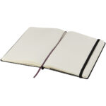 Alejandra A5 genvundet læderindbundet hardcover notesbog Dennne Alejandra hardcover notesbog i A5 er fremstillet af genvundet PU plast og RPET med 80 linjerede ark cremefarvet papir på 70 g/m² Har båndmarkør og harmonikalomme.