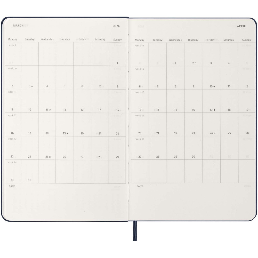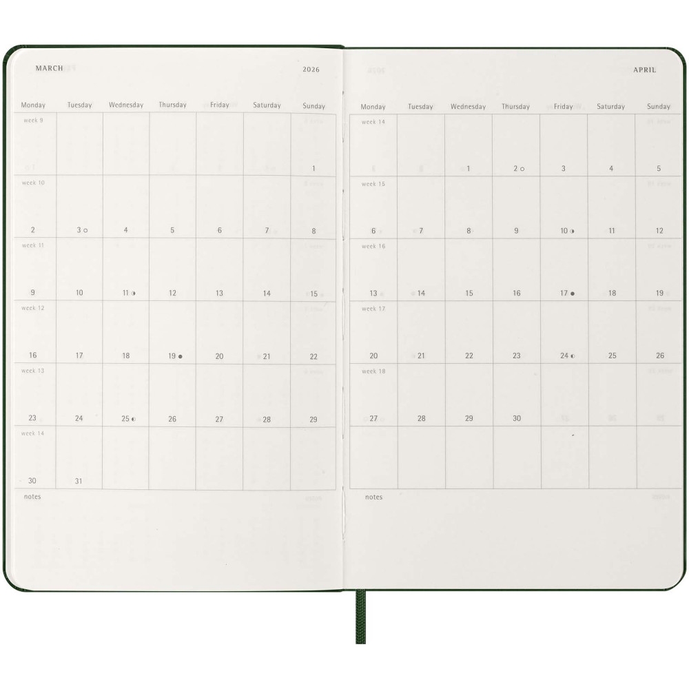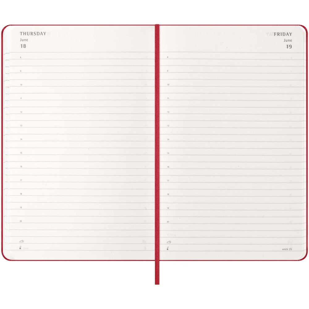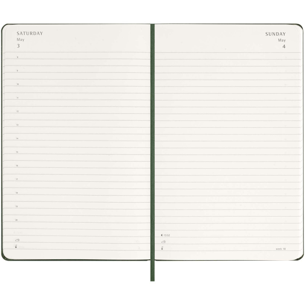 Moleskine L hard cover 12 måneders dagskalender Kontakt os for pris Firmalogo kan tilføjes på dette produkt Planlæg hver dag i mindste detalje med Moleskine 12-måneders dagskalender i str. L med hardcover. Denne planner er dateret fra januar til december 2027 og formateret til at vise en hel dag pr. side – for at have masser af plads til at optage begivenheder, aftaler, gøremål, påmindelser og planer. I løbet af året vokser den til at blive en dag-for-dag fysisk registrering af alt, der er opnået. Har elfenbensfarvet syrefrit papir, sort elastisk lukning, sidemarkeringsbånd, en farveafstemt, udvidelig inderlomme, klistermærker til personlig tilpasning samt årstalsmærkater til ryggen. Farver Scarlet rød Safirblå Myrtle grøn Ensfarvet sort Søger du reklameartikler og profiltøj? Kontakt vores team i dag, og lad os hjælpe dig med den rigtige løsning til din virksomhed 70 260 760 Kontakt os 70 260 760 Kontakt os
