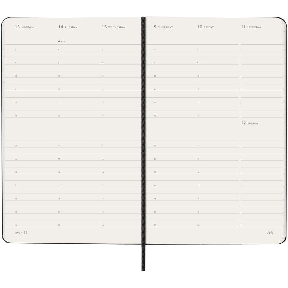 Moleskine L hard cover 12 måneders lodret kalender Kontakt os for pris Firmalogo kan tilføjes på dette produkt Denne lodrette hardcover Moleskine ugekalender str. L går fra januar til december 2027. Med et lodret format, der viser hver uge på et to-siders opslag med dagene henover sidens øverste del, er denne populære stil i kalender perfekt til dem, der ønsker at have overblik over den organiserede uge. Har elfenbensfarvet syrefrit papir, sort elastisk lukning, sidemarkeringsbånd, en farveafstemt, udvidelig inderlomme, klistermærker til personlig tilpasning samt årstalsmærkater til ryggen. Farver Ensfarvet sort Søger du reklameartikler og profiltøj? Kontakt vores team i dag, og lad os hjælpe dig med den rigtige løsning til din virksomhed 70 260 760 Kontakt os 70 260 760 Kontakt os