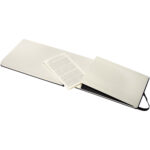 Moleskine Cahier Journal L – blank Har papomslag med afrundede hjørner. Synlige syninger i ryggen, med klap til samling af løser noter. Indeholder 80 70GSM elfenbensfarvede, blanke sider. De sidste 16 ark er aftagelige. Bøgerne er pakket med 1 stk.