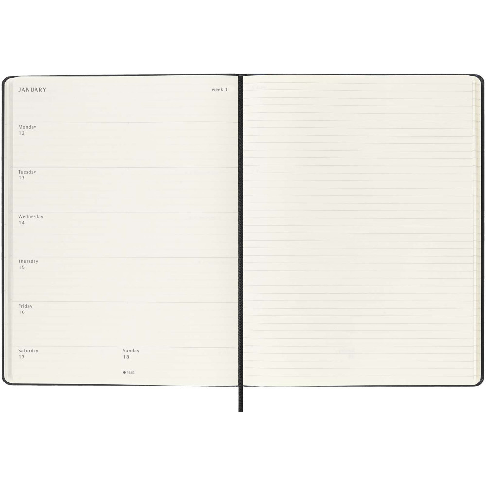 Moleskine L hard cover 12 måneders ugekalender Gående fra januar til december 2027 viser denne Moleskine 12-måneders ugekalender str. L med hardcover hele ugen på et øjekast, samtidigt med at den har snapshot sider for år og måneder for at give et bredere overblik over året, efterfulgt af sider til rejseplanlægning, ideer og mål. Dagene i hver uge vises på den ene […]