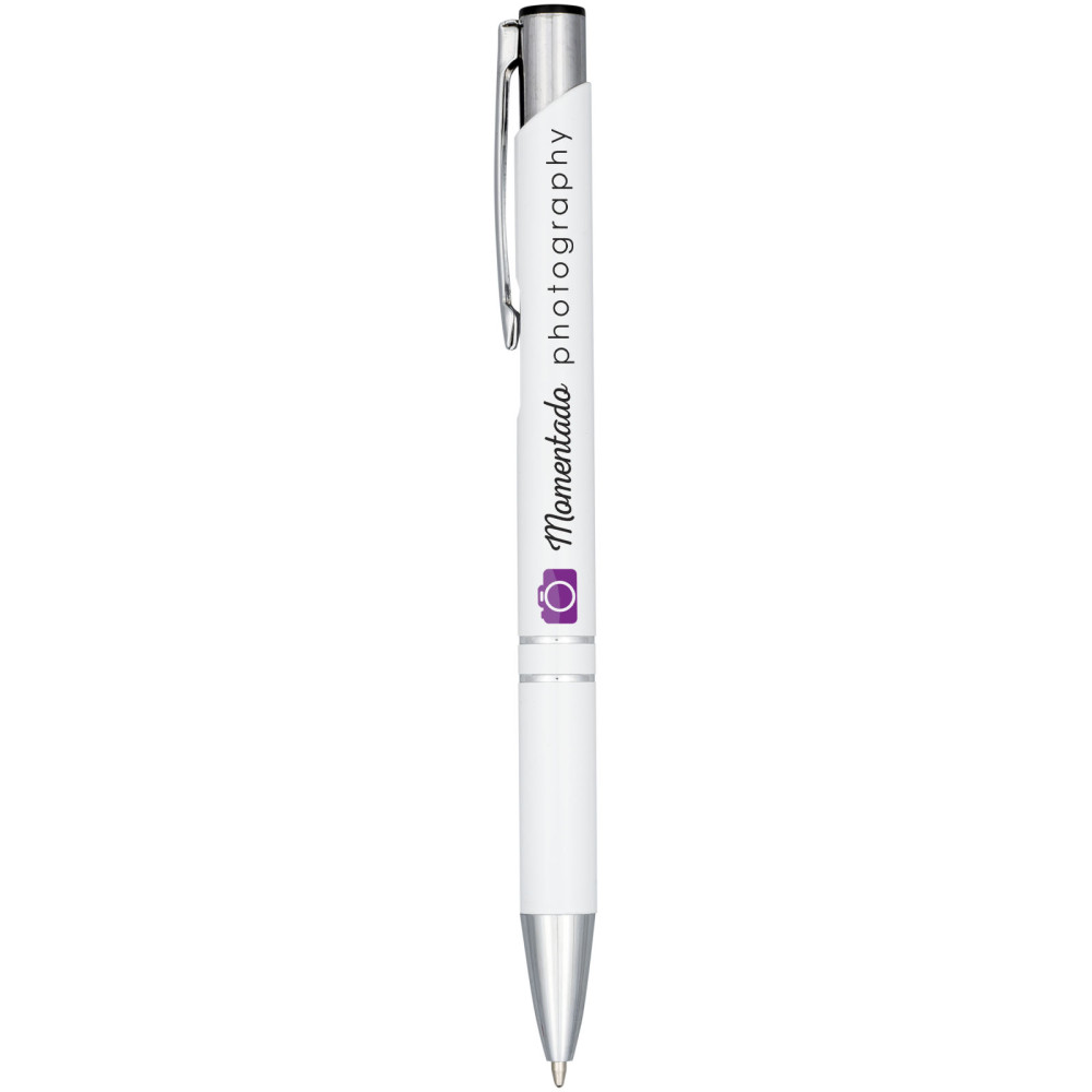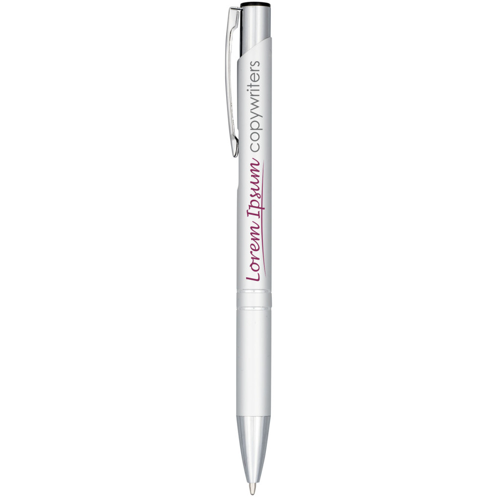 Moneta anodiseret kuglepen (blå refill) Kontakt os for pris Firmalogo kan tilføjes på dette produkt Kuglepen med klikmekanisme, aluminiumscylinder, ABS-dele, og en stålklips. Pennen fås i mange forskellige farver og har en anodiseret finish, som giver den en fantastisk glans. Det omfattende og populære Moneta-sortiment er tilgængelig i mange forskellige stilarter og fuldførelser. Farver Ensfarvet sort Hvid Sølv Grå Blå Rød Krom Søger du reklameartikler og profiltøj? Kontakt vores team i dag, og lad os hjælpe dig med den rigtige løsning til din virksomhed 70 260 760 Kontakt os 70 260 760 Kontakt os
