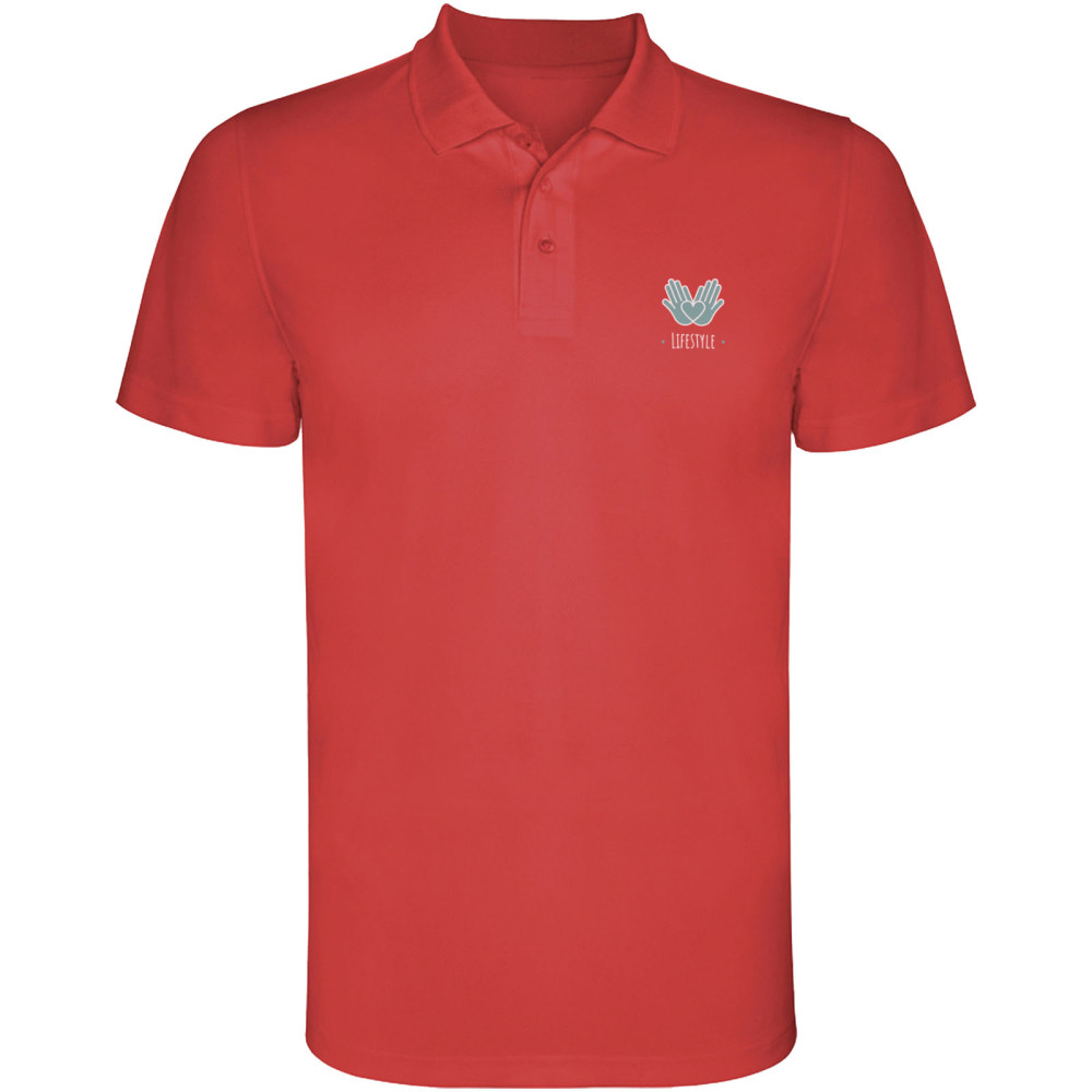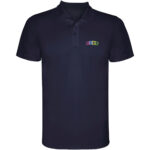 Montmelo kortærmet unisex sportspolo Kombination med to farver. Krave med knapper, dækkede sømme og stolpelukning har farvekontrast. Nemt at vaske og let at tørre teknisk, åndbart stof. Aftagelig etiket.