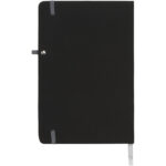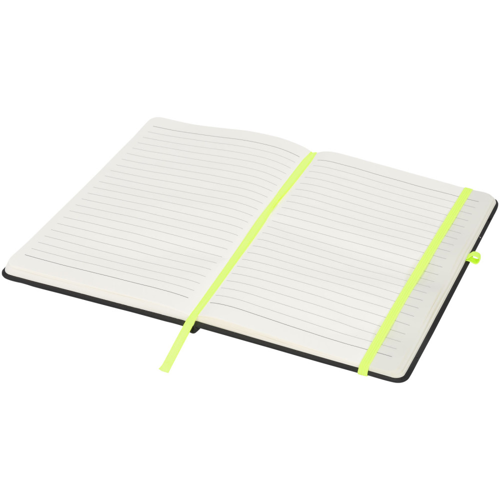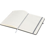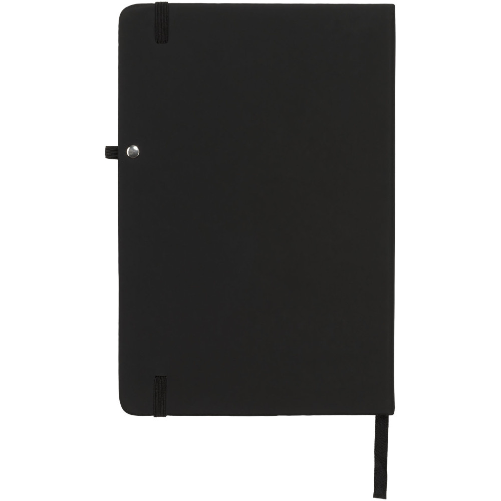 Thalaasa A6 recycled hardcover notesbog med kuglepen (sort refill) Denne Thalaasa hardcover notesbog i A6 er lavet af ocean bound recycled plast med 80 linjerede ark cremefarvet papir på 70 g/m². Notesbogen har afrundede hjørner, lukning med elastik og en løkke til en pen. Kuglepennen med sort blæk er også fremstillet af ocean bound recycled plast. Skrivelængde: 1000 meter. Spidsstørrelse: 1,0 mm.