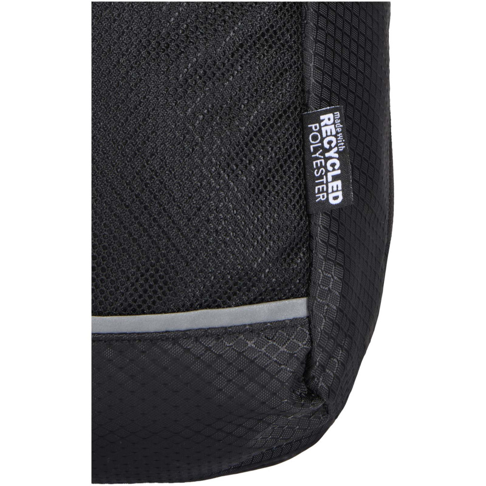 Nomad GRS genvundet drikke crossbodytaske 6 l Kontakt os for pris Firmalogo kan tilføjes på dette produkt Nomad crossbody tasken til væsketransport er lavet af GRS certificeret, genvundet ripstop stof med en vandafvisende finish, GRS certificeret RPET foring og reflekterende elementer. Den er designet til hurtige vandreture, løbeture på stier, festivaler eller enhver aktivitet, hvor du har brug for at medbringe vand og vigtige ting uden ekstra vægt. Tasken har et hovedrum med lynlås og en indvendig ærmelomme, en netlomme foran med elastisk snøre til sikkert at holde en vandflaske og en stor lomme med hurtig adgang bagpå til din telefon eller andre småting. Den justerbare rem og den åndbare mesh ryg giver bærekomfort. Kapacitet: 6 liter. Farver Sandsten Marineblå Ensfarvet sort Søger du reklameartikler og profiltøj? Kontakt vores team i dag, og lad os hjælpe dig med den rigtige løsning til din virksomhed 70 260 760 Kontakt os 70 260 760 Kontakt os
