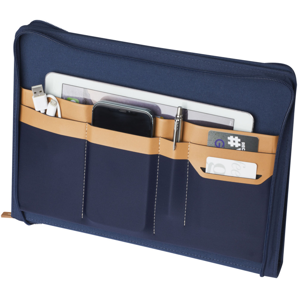 Nomumi A4 dokumentmappe Kontakt os for pris Firmalogo kan tilføjes på dette produkt Det RCS certificerede Nomumi portefølje er delvist lavet af genvundet “post-consumer” polyester, hvilket gør denne portefølje til et mere ansvarlig valg, da det hjælper med at reducere brugen af helt nye råvarer. Med lynlåslukning, penneløkke, harmonikalomme og 20 hvide forede ark med 70 g/m2 genbrugspapir fra ansvarlig kilder. Pennen og andet tilbehør, der vises på billederne, er ikke inkluderet med denne vare. Farver Marineblå Grå Ensfarvet sort Søger du reklameartikler og profiltøj? Kontakt vores team i dag, og lad os hjælpe dig med den rigtige løsning til din virksomhed 70 260 760 Kontakt os 70 260 760 Kontakt os