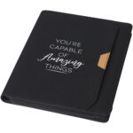 Desk-Mate® A5 farvet spiralnotesbog Tilføj nogle friske farver til dine noter med denne A5 spiralnotesbog. Det inkluderer 50 ark blankt 80 g/m2 genbrugspapir og et 320 g/m2 kort frontcover i et udvalg af farver. Du kan tilpasse siderne i denne alsidige notesbog med ethvert design – så uanset om du vil have linjeret papir, firkanter eller prikker, er alt […]