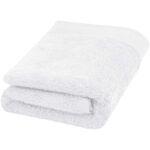 Nora 550 g/m² håndklæde i bomuld 50x100 cm Kontakt os for pris Firmalogo kan tilføjes på dette produkt Bæredygtigt 450 g/m² håndklæde i høj kvalitet, der er dejligt kraftig, silkeagtigt og super blødt mod huden. Denne vare er certificeret STANDARD 100 af OEKO-TEX®. Det garanterer, at tekstilproduktet er fremstillet via bæredygtige processer under miljøvenlige og socialt ansvarlige arbejdsvilkår og er uden skadelige kemikalier eller syntetiske materialer. Findes i flere flotte farver til at forskønne ethvert hjem eller hotelbadeværelse. Håndklædet er farvet med en vandfri farvningsproces, der reducerer brugen af ferskvand og forhindrer de store mængder forurenet vand, der er typiske for vandbaserede farvningsprocesser. Håndklædestørrelse: 50×100 cm. Fremstillet i Europa. Farver Hvid Marineblå Ensfarvet sort Søger du reklameartikler og profiltøj? Kontakt vores team i dag, og lad os hjælpe dig med den rigtige løsning til din virksomhed 70 260 760 Kontakt os 70 260 760 Kontakt os