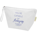 Trip Aware™ genvundet rejsetoilettaske 6 L Trip Aware™ rejsetoilettasken af genbrugsmateriale er en kompakt og struktureret taske, der er designet til at holde personlige ejendele pænt organiseret under rejsen. Den er lavet af 290D twill polyester med strikket bagside og foret med RPET 210D/PU og har et rent layout med praktiske rum. Hovedrummet har en indvendig lynlåslomme til mindre genstande, mens […]