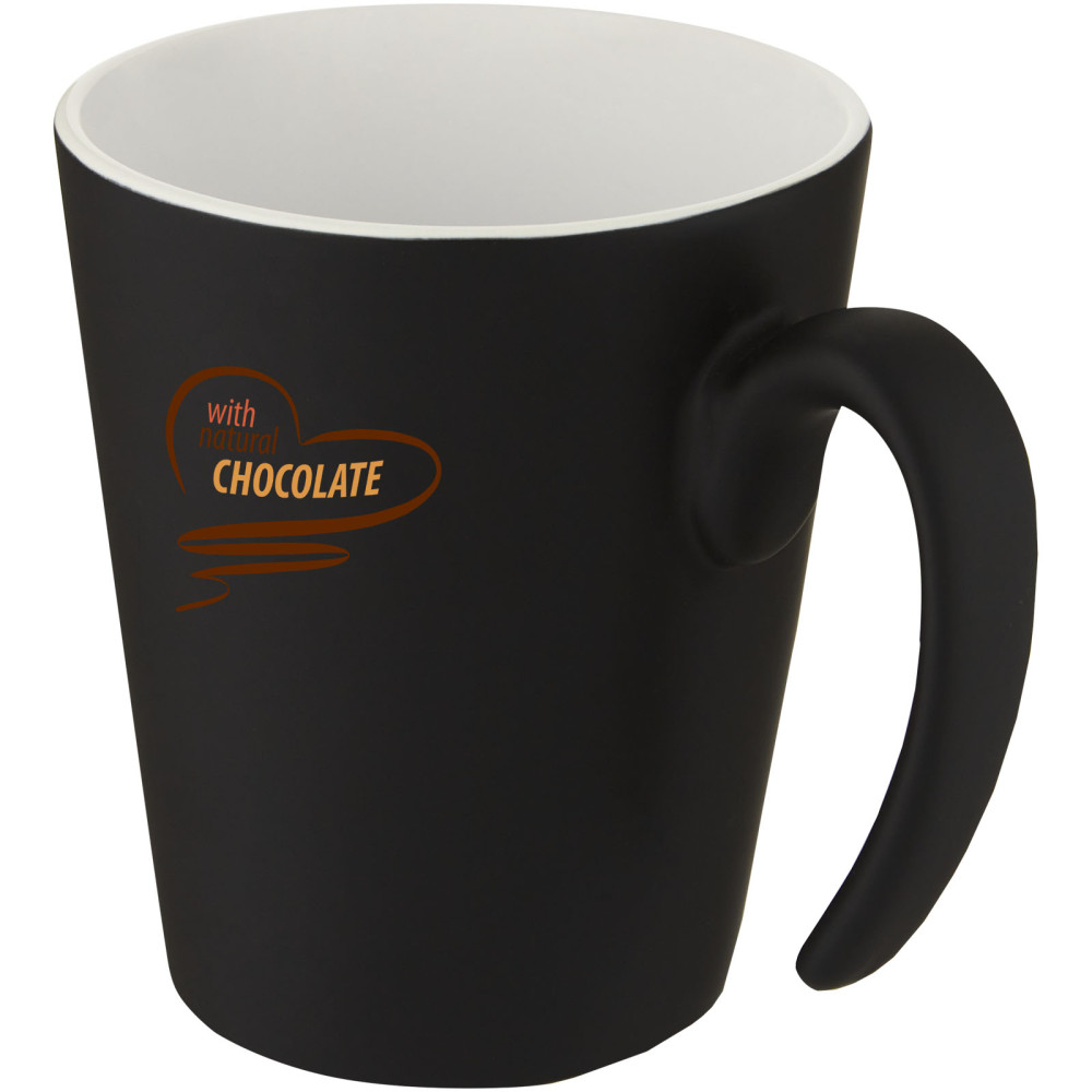Oli 360 ml keramisk krus med håndtag Kontakt os for pris Firmalogo kan tilføjes på dette produkt Keramisk krus med et moderne design og en mat finish med et skinnende interiør og farver. Rumindholdet er 360 ml. Tåler opvaskemaskine til alle dekorationsmetoder. Leveres i en æske af genbrugspap. Farver Hvid / ensfarvet sort Gul / ensfarvet sort Orange / ensfarvet sort Blå / ensfarvet sort Grøn / ensfarvet sort Søger du reklameartikler og profiltøj? Kontakt vores team i dag, og lad os hjælpe dig med den rigtige løsning til din virksomhed 70 260 760 Kontakt os 70 260 760 Kontakt os
