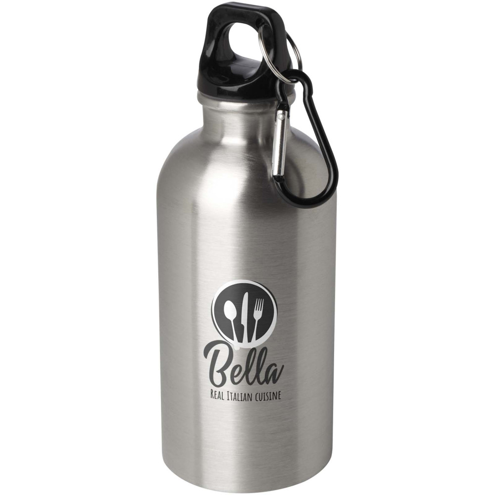 Oregon RCS certificeret vandflaske på 400 ml i rustfrit stål med enkelt væg og karabinhage Kontakt os for pris Firmalogo kan tilføjes på dette produkt Vær altid hydreret med denne holdbare men lette vandflaske på 400 ml fremstillet af genanvendt RCS certificeret rustfrit stål. Den perfekte følgesvend til sport, dagture eller til brug på kontoret. Denne Oregon flaske med enkelt væg har drejelåg og byder på masser af plads til alle slags logoer. Fastgør karabinhagen (ikke egnet til klatring) sikkert til en pose for at undgå at miste den. Farver Hvid Gul Rød Orange Lilla Magenta Sky blå Kongeblå Hale blå Æblegrøn Sølv Ensfarvet sort Søger du reklameartikler og profiltøj? Kontakt vores team i dag, og lad os hjælpe dig med den rigtige løsning til din virksomhed 70 260 760 Kontakt os 70 260 760 Kontakt os