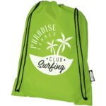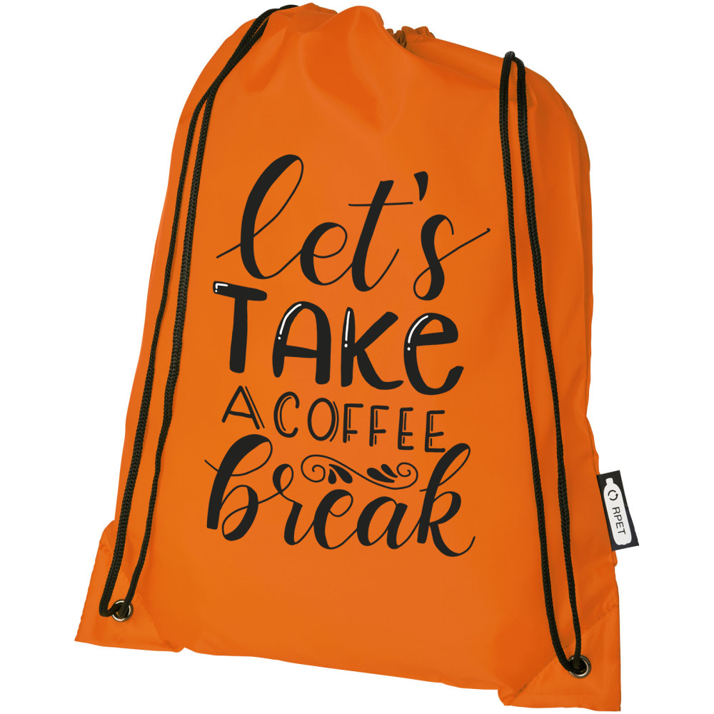 Oriole RPET-rygsæk med snøre 5L Kontakt os for pris Firmalogo kan tilføjes på dette produkt Robust taske fremstillet af 100 % genanvendt, genvundet plast, som bidrager til reduktion af plastaffald. Hver taske er lavet af 3,5 genanvendte PET-flasker. Stort hovedrum med snorlukning i sort farve. Kapacitet: 5 liter, kan bære op til 5 kg vægt. Farver Ensfarvet sort Marineblå Kongeblå Rød Hvid Gul Orange Procesblå Grøn Limefarvet Grå Søger du reklameartikler og profiltøj? Kontakt vores team i dag, og lad os hjælpe dig med den rigtige løsning til din virksomhed 70 260 760 Kontakt os 70 260 760 Kontakt os