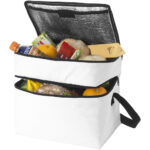 Oslo køletaske 13L Kontakt os for pris Firmalogo kan tilføjes på dette produkt Vær sikker på afkølede drikkevarer og snacks når som helst og hvor som helst med Oslo køletasken. Køletasken har to separate rum med lynlås. Den øverste del er perfekt til opbevaring af små snacks, og den nederste del er ideel til større dagligvarer. Skulderremmen er justerbar, så tasken er nem at bære af alle. Køletasken består af 600D polyester, et kraftigt og slidstærkt stof. Farver Hvid Procesblå Limefarvet Rød Marineblå Søger du reklameartikler og profiltøj? Kontakt vores team i dag, og lad os hjælpe dig med den rigtige løsning til din virksomhed 70 260 760 Kontakt os 70 260 760 Kontakt os