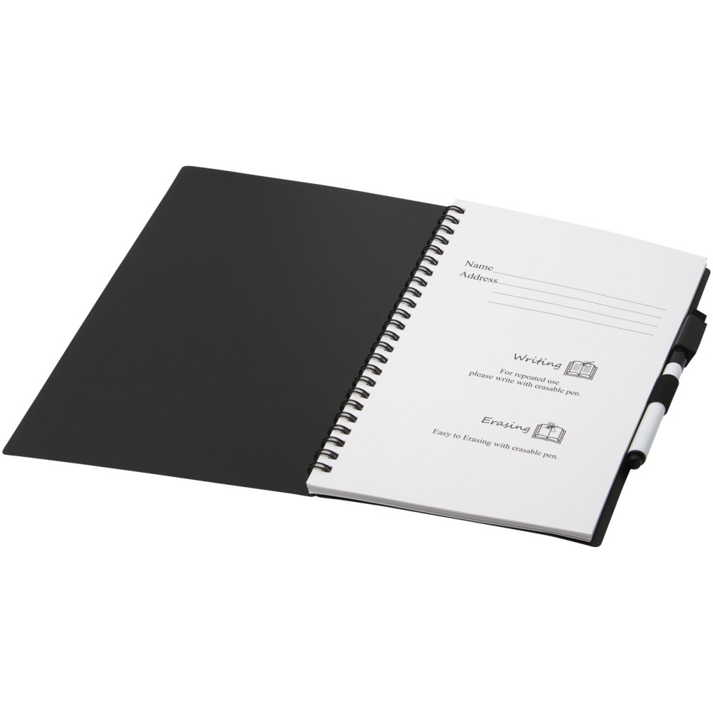 Pebbles genanvendelig notesbog i reference A5 størrelse Kontakt os for pris Firmalogo kan tilføjes på dette produkt Bæredygtig notesbog fokuseret på reduktion af brugen af papir for at at redde miljøet. Efter man har taget noter, tegnet eller brainstormet i noget tid, kan siderne viskes rene med skrivestiftens viskelæder, så siderne kan bruges igen. Den kan også rengøres med en almindelig stofklud (medfølger ikke). Har 20 ark (40 sider) med halvt prikket og halvt blankt layout og en sort skrivestift. Farver Ensfarvet sort Søger du reklameartikler og profiltøj? Kontakt vores team i dag, og lad os hjælpe dig med den rigtige løsning til din virksomhed 70 260 760 Kontakt os 70 260 760 Kontakt os