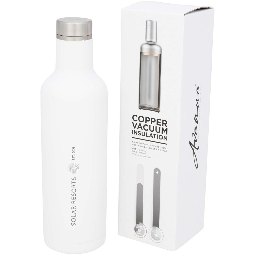 Pinto kobber vakuum isolering termoflaske Kontakt os for pris Firmalogo kan tilføjes på dette produkt Holder dine drikkevarer varme i 12 timer eller kolde i 48 timer. Dobbeltvæg rustfrit stål vakuum konstruktion, med kobber isolering. Denne konstruktion forhindrer kondens på ydersiden. Spray pulvermaling på den ydre krop. Kapacitet 750 ml. Leveres i en gaveæske. Farver Ensfarvet sort Hvid Søger du reklameartikler og profiltøj? Kontakt vores team i dag, og lad os hjælpe dig med den rigtige løsning til din virksomhed 70 260 760 Kontakt os 70 260 760 Kontakt os