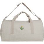 Porter 500 g/m² Aware™ recycled rejsetaske 50 L Kontakt os for pris Firmalogo kan tilføjes på dette produkt Denne rejsetaske fra Porter er fremstillet af 500 g/m² genvundet bomuld og genvundet polyester og har et rummeligt hovedrum, der tilbyder optimal opbevaring af større genstande, samt en lille frontlomme til at opbevare små genstande såsom pas eller telefon. Rejsetasken kan bæres i de to korte håndtag eller i den udvidelige og aftagelige skulderrem, der kan justeres for maksimal komfort. Rejsetasken indeholder Cyclo® genbrugsfibre, hvortil der bruges forsorteret affald, der bestemmer garnets farve. Disse fibre reducerer ikke kun efterspørgslen efter nye ressourcer, men fremmer også en forpligtelse på genanvendelse, der repræsenterer essensen af at reducere spild og fremme et lukket kredsløb. Hver taske leveres også med en Aware™ mærkat. Denne innovative funktion giver brugerne mulighed for at spore deres vares oprindelse og rejse gennem en QR kode, hvilket øger gennemsigtigheden i forsyningskæden og fremmer en stærkere forbindelse mellem produktet og dets produktionsproces. Kapacitet: 50 liter. Farver Havregryn Marineblå Grøn Ensfarvet sort Søger du reklameartikler og profiltøj? Kontakt vores team i dag, og lad os hjælpe dig med den rigtige løsning til din virksomhed 70 260 760 Kontakt os 70 260 760 Kontakt os