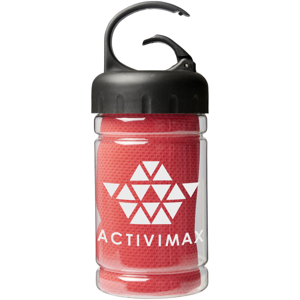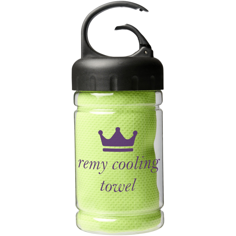 Remy kølehåndklæde i PET-beholder Kontakt os for pris Firmalogo kan tilføjes på dette produkt Hurtigt absorberende, hurtigtørrende, og vaskbart kølehåndklæde produceret af stærk og holdbar polyester til at holde dig kølig under træning eller enhver udendørs aktivitet. Leveres i en PET-beholder med et bærehåndtag med indbygget karabinhage for nem transport. Findes i 5 friske farver. Stor trykareal på beholderen, dekoration også mulig på selve kølehåndklædet. Størrelse: 30 x 80 cm. Farver Hvid Rød Kongeblå Orange Limefarvet Søger du reklameartikler og profiltøj? Kontakt vores team i dag, og lad os hjælpe dig med den rigtige løsning til din virksomhed 70 260 760 Kontakt os 70 260 760 Kontakt os